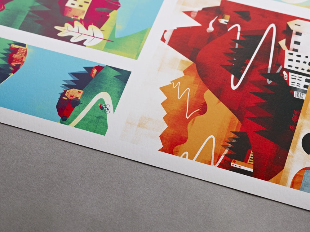 For framed prints, sizes include the frame and a white matte as seen in product image. Framed prints do not include a signature or printed edition number but are still part of the limited edition prints and come with certificate of authenticity.